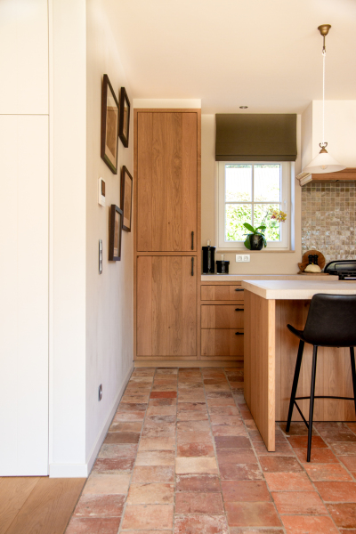 Als liefhebber van landelijke keukens zijn wij helemaal fan van alle leuke details die deze keuken bezit. Het werkblad is handgefrijnd, zowel op de kopse kanten als bovenop het werkblad, dit maakt de Franse kalksteen Massangis extra bijzonder! Rond de keukenfronten is gewerkt met een massieve eiken kader voor een extra landelijk effect. Geef je ogen de kost als je deze foto’s bekijkt!